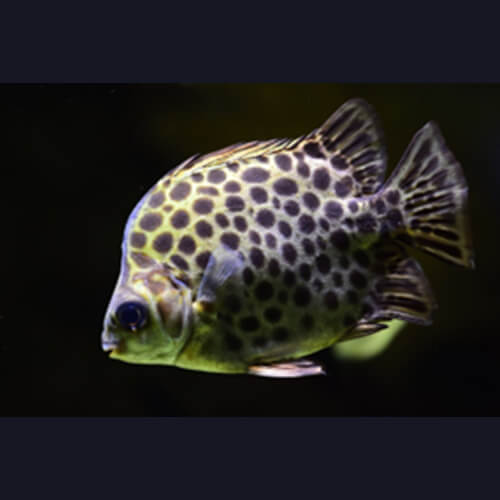 The Scat fish is a popular species famously known for its interesting spotted pattern and earthy coloration. Its native range spans the coastal brackish waters of the indo-pacific region.